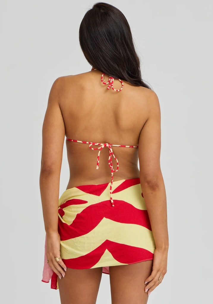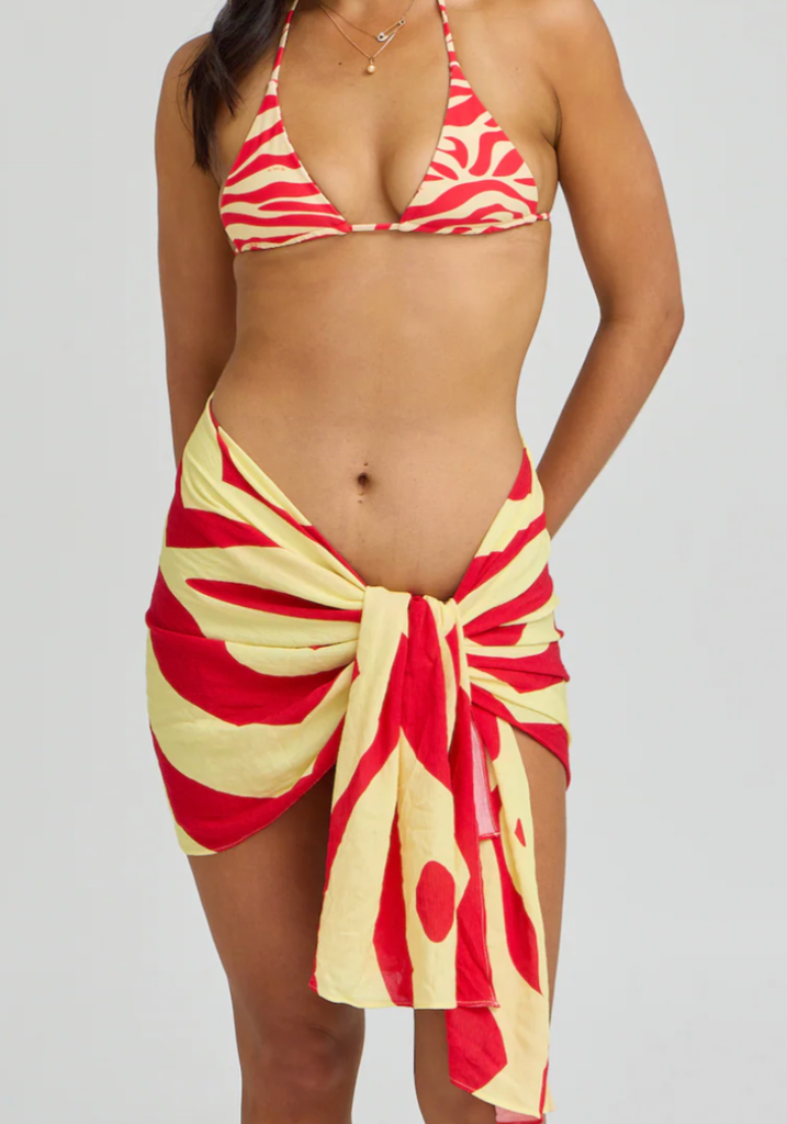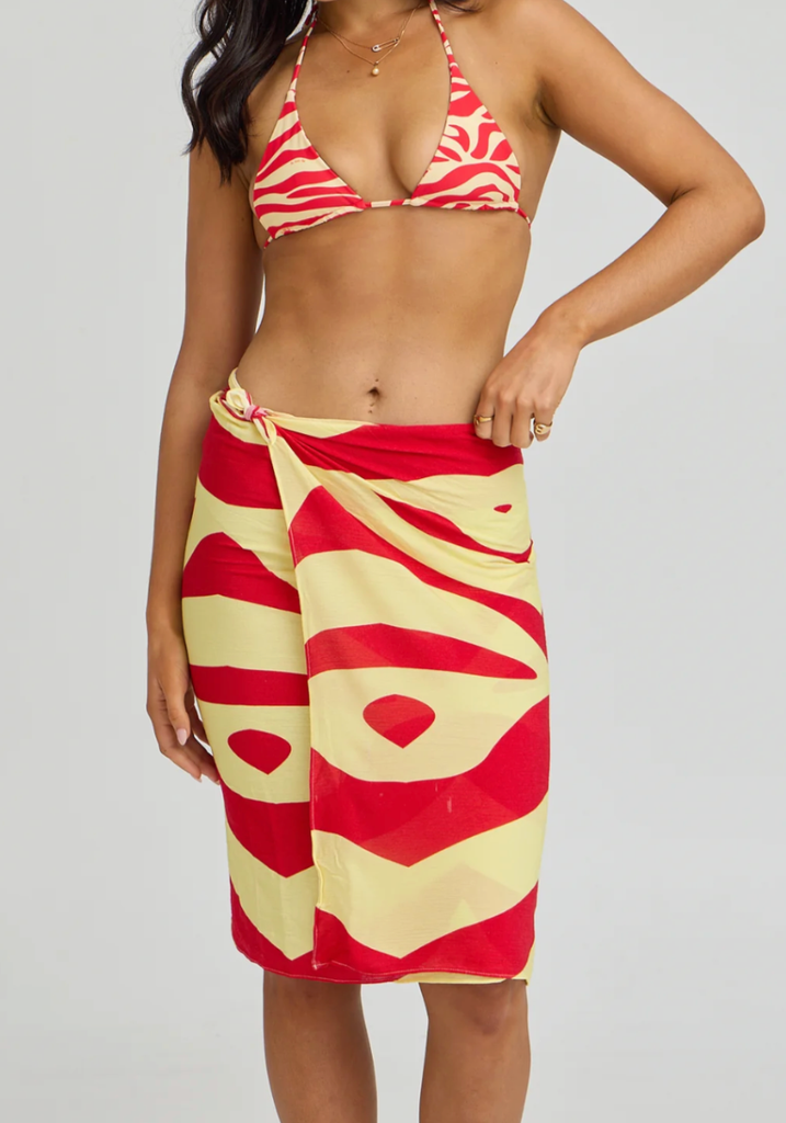 Lightweight sarong, ideal as a casual beach cover-up or layered over swimwear for a more polished look. Size ~172 cm × 60 cm. Fabric is 100% viscose. Care: gentle cold machine wash, dry flat in shade.