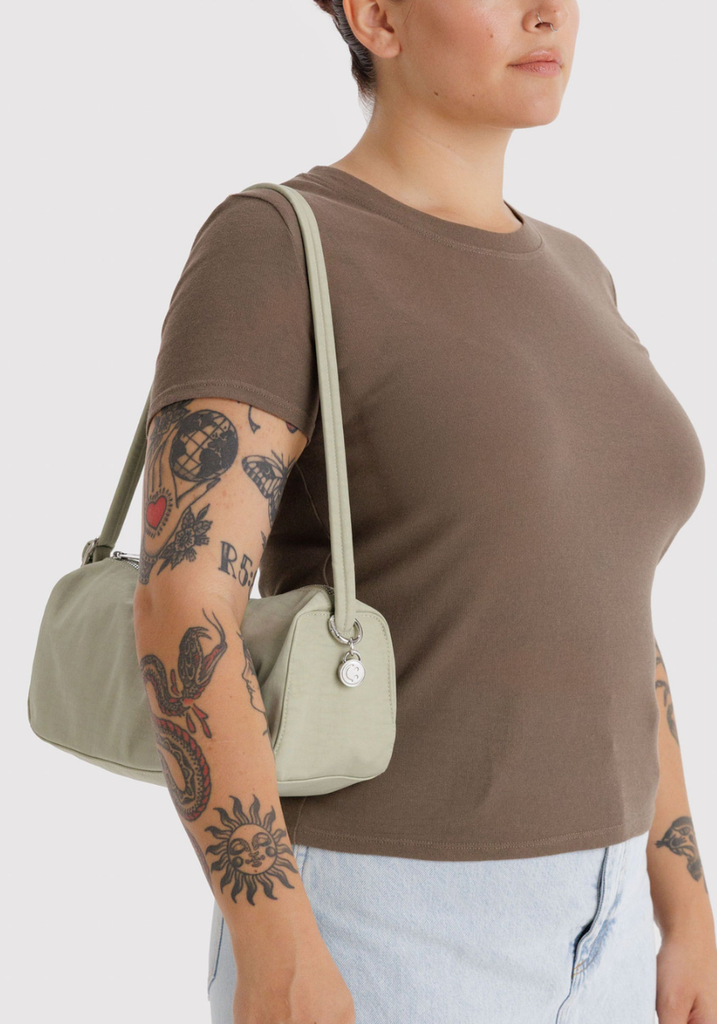 Inspired by the shape of a loaf of bread, a clean and simple bag for everyday. Fit your wallet, phone, keys, and a water bottle—all secured with a zip closure. Plus, accessorize with a dedicated charm loop and a metal smiley charm.