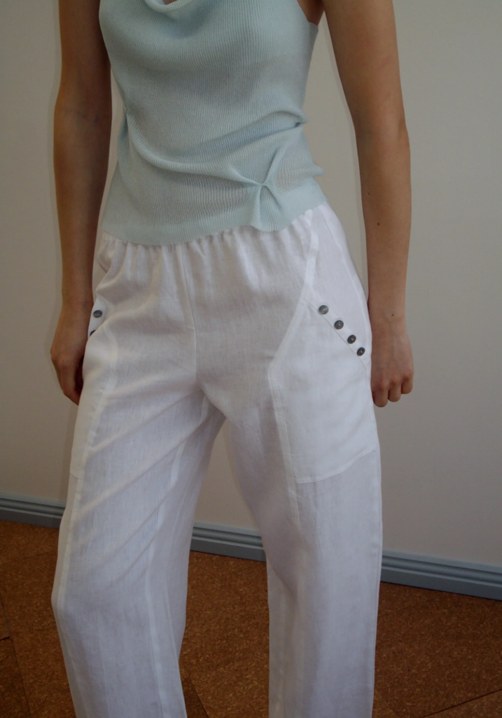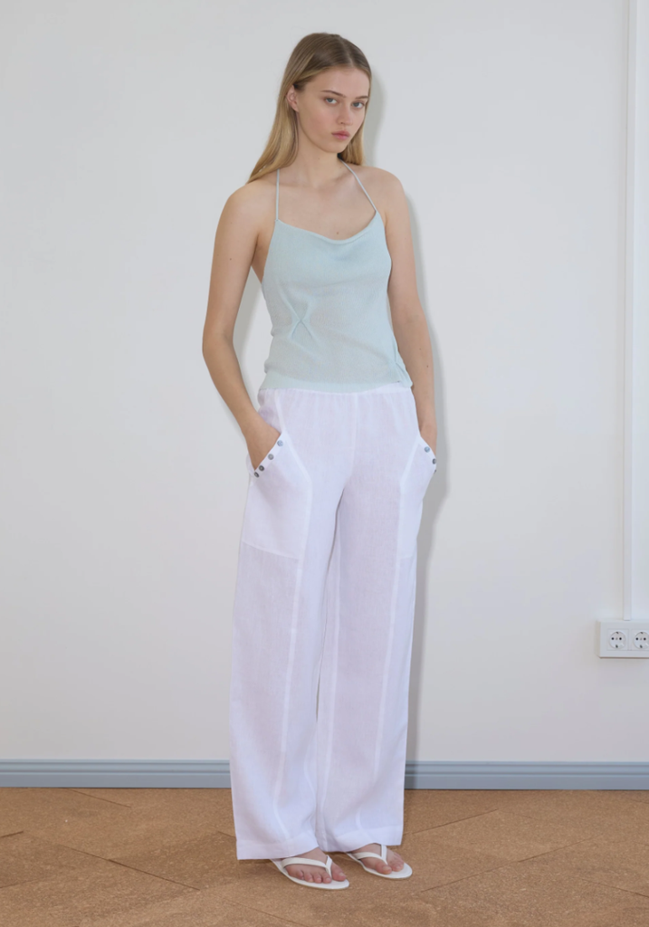 the angle pocket pant by Deiji Studios in white