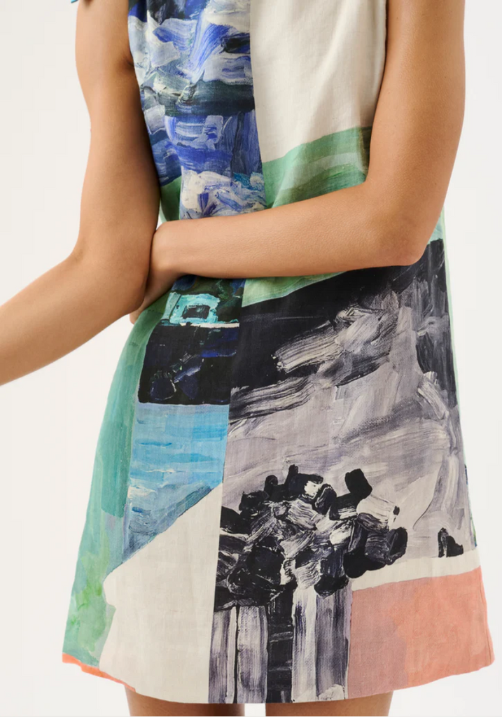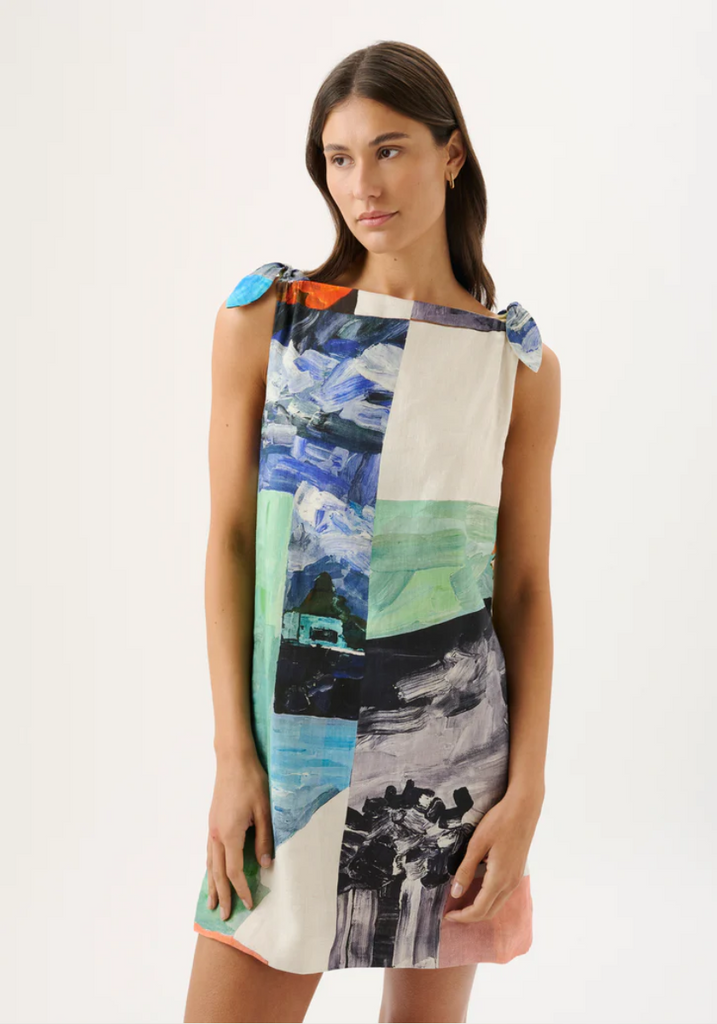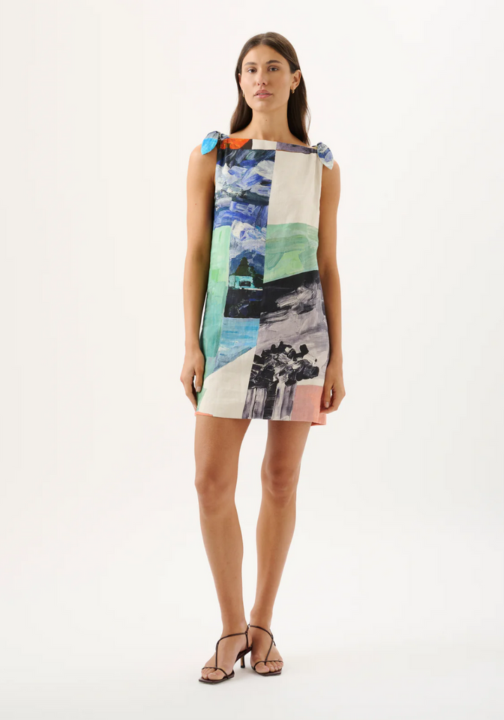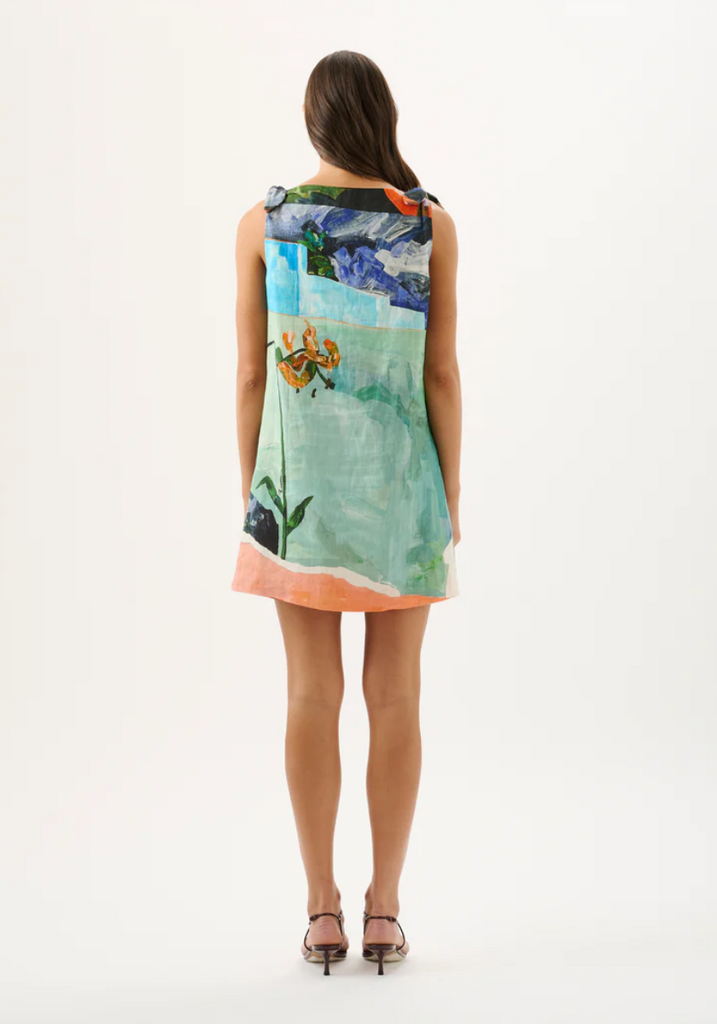 Rendered in the bespoke Wonderland print, the Agatha Dress is crafted in a breathable mid-weight linen fabrication. Finished with shoulder tie detailing, this silhouette is effortless and versatile for warm days and seamless styling. Please note print placement is individual and unique to each piece.