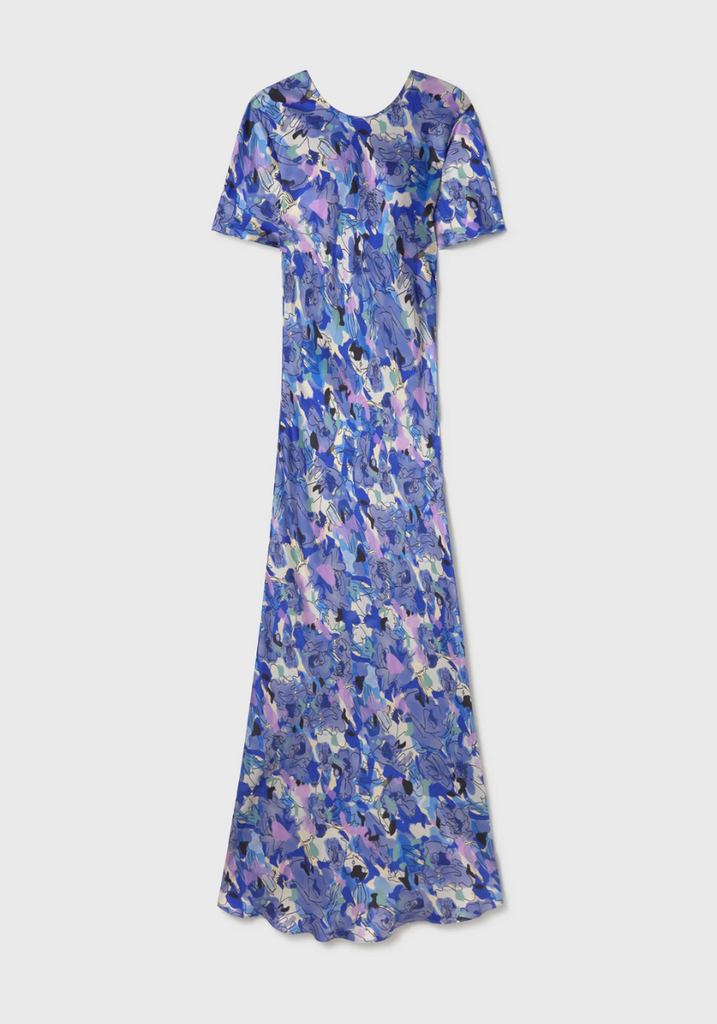Silk Laundry Short Sleeve Bias Cut Dress, made from 100% silk. Cut on the bias with an ankle length hemline. Featuring a round neckline, detailed with a logo chain.