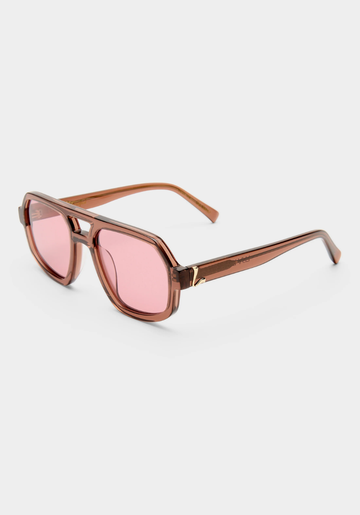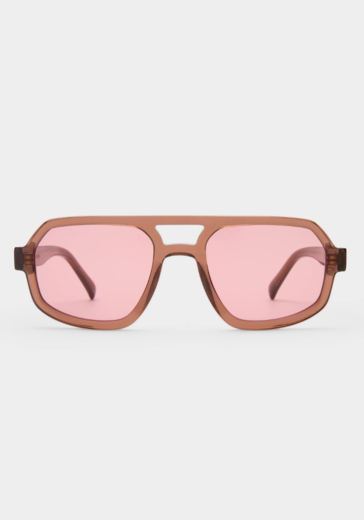 • Finished in a premium crystal burgundy frame with blush lenses.