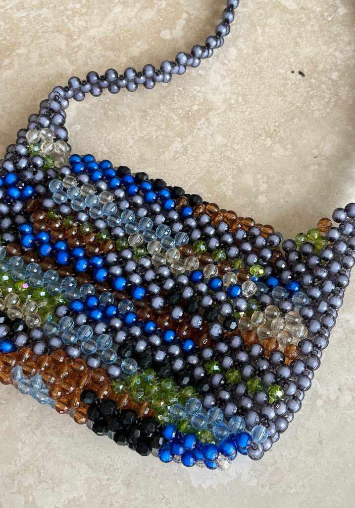 A retro-inspired shoulder bag meets incredible craftsmanship in one perfect party bag. The petite size holds all your essentials — phone, card case and lipstick. Handwoven featuring coloured beads (an ode to our island elements with two colour combinations to choose from: Ocean or Sunset) and a magnetic clasp to keep your belongings safe.