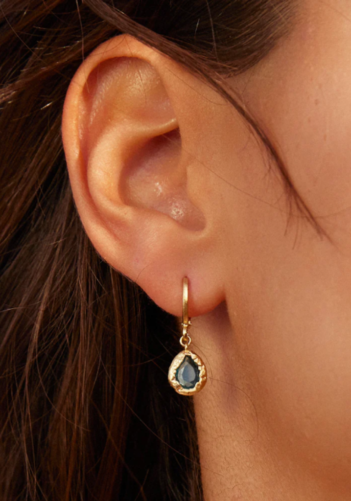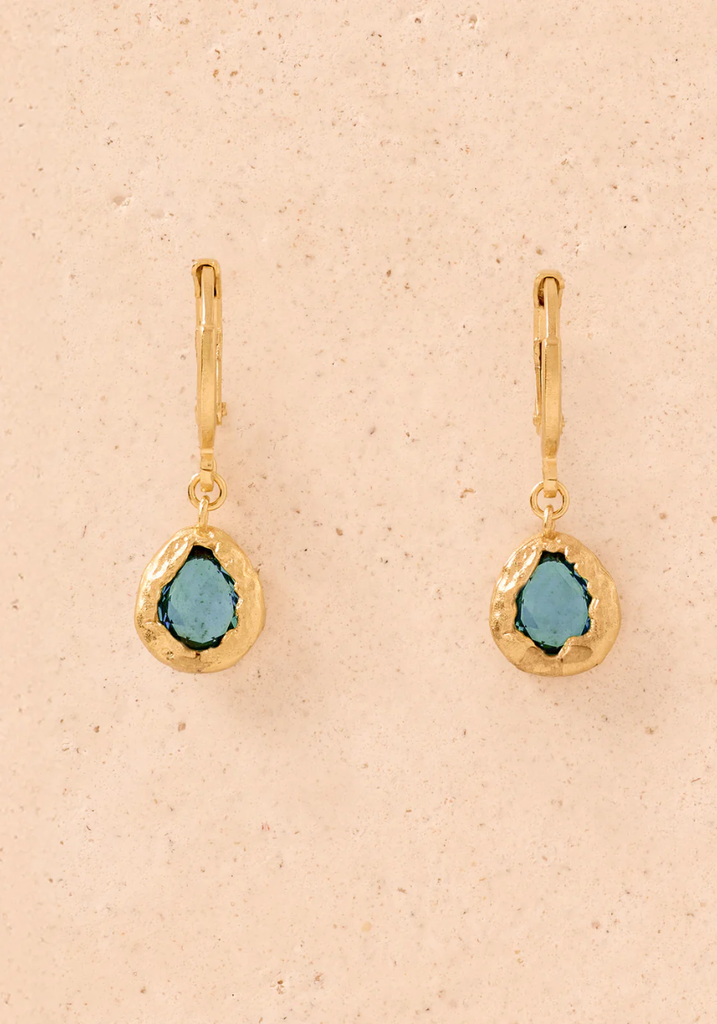 Set in a textured gold nest, the dainty stones of our Lysia earrings capture nature’s ever-changing beauty. From serene seas to warm sunsets, explore the hues of the Mediterranean landscape.