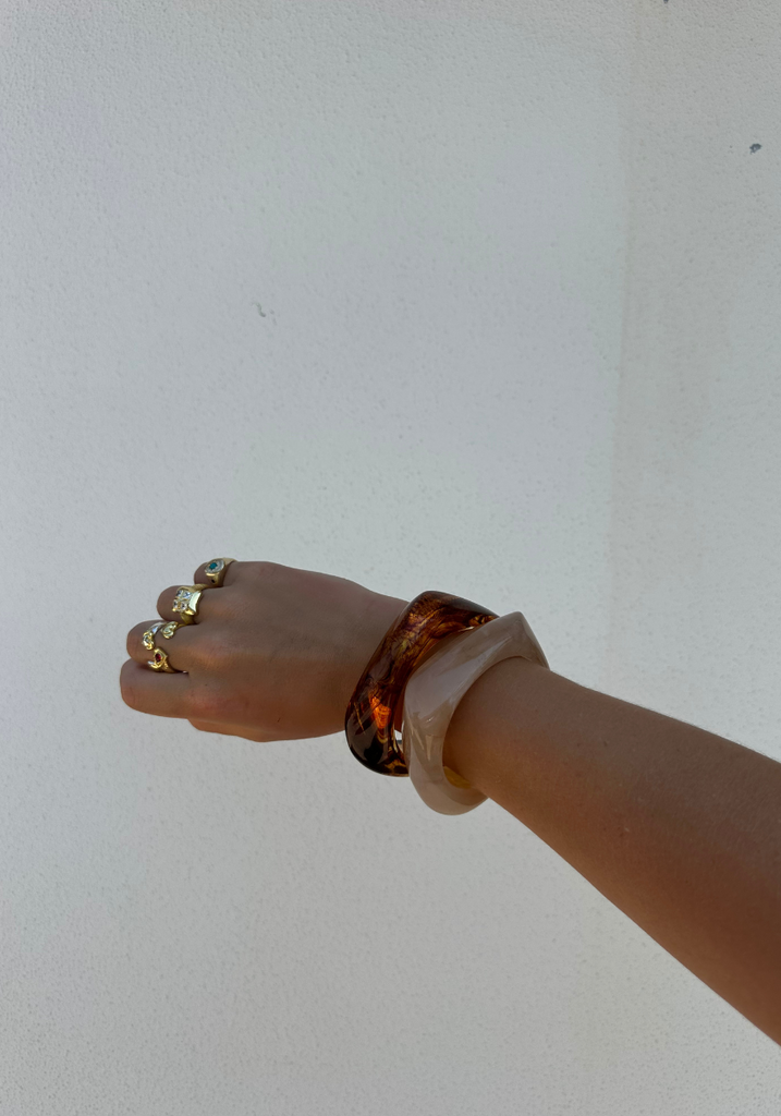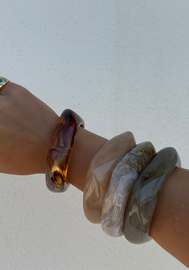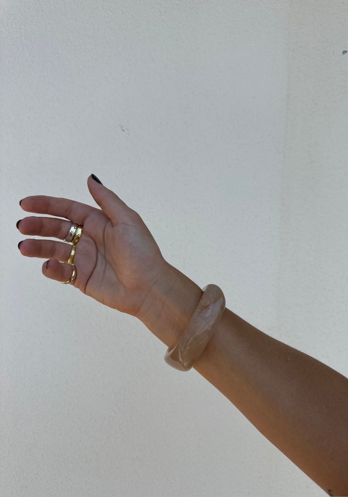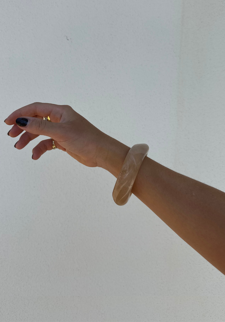 Chunky marbled resin bangle in Peach. A statement piece to elevate any outfit.
