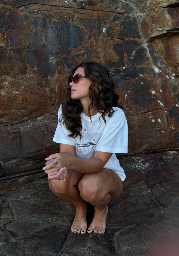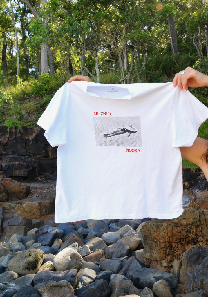 Elevate your beachside style with the Le Chill Boxy Tee - Blanc from Joyeux. Crafted from soft, breathable cotton, this tee features a relaxed boxy fit perfect for laid-back days. This tee embodies effortless beachy vibes and pays homage to the beautiful beach town of Noosa, where one of our boutiques is located. Embrace relaxed elegance with the Le Chill Boxy Tee – your new favourite summer staple.