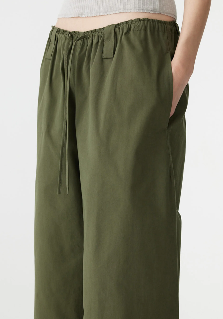 The Drawstring Detail Pull On Pant is a wide, straight leg style designed for relaxed ease and adjustability. Featuring a pull-on elasticated waistband with self drawstring, finished with side entry pockets and a patch pocket at the side of the leg. Drawstring ties at the hem allow the silhouette to be worn loose or cinched for shape. Crafted from 100% cotton for everyday comfort.