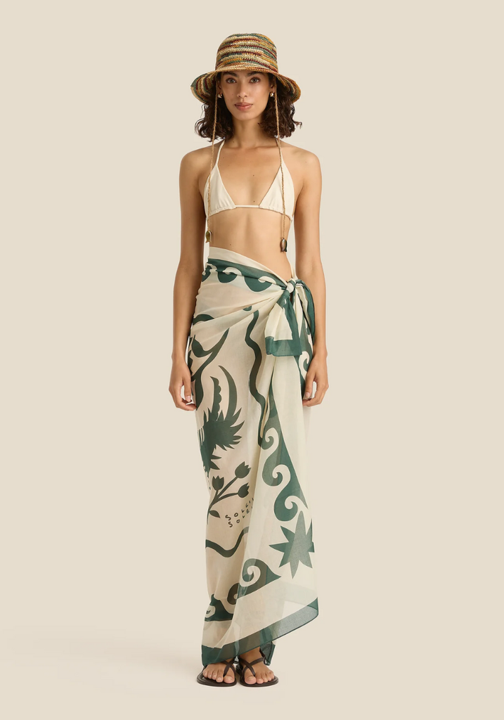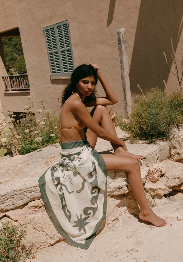 Where it all began. A perfect square of lightweight organic cotton, versatile for all your over-swim needs. Our signature piece—the Square Pareo can be tied as a mini or midi length beach cover-up, or folded into quarters and used for a myriad of purposes as a smaller square scarf.