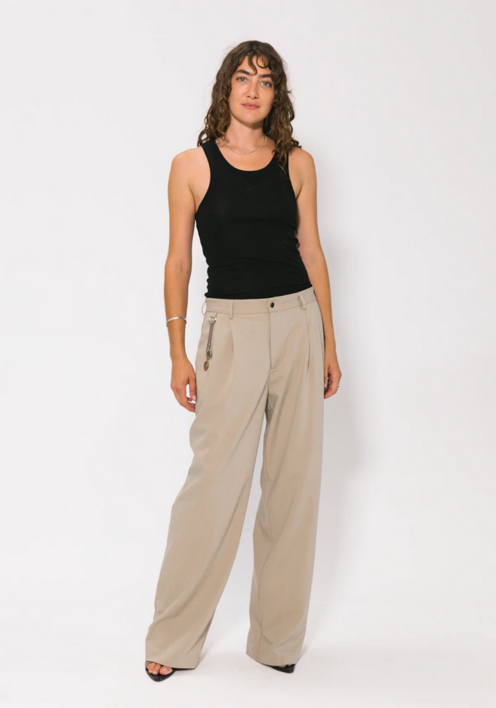 Berch Westwood Pleated Pant have a relaxed fit, contrasted tailored waistband, pockets and pleated details.