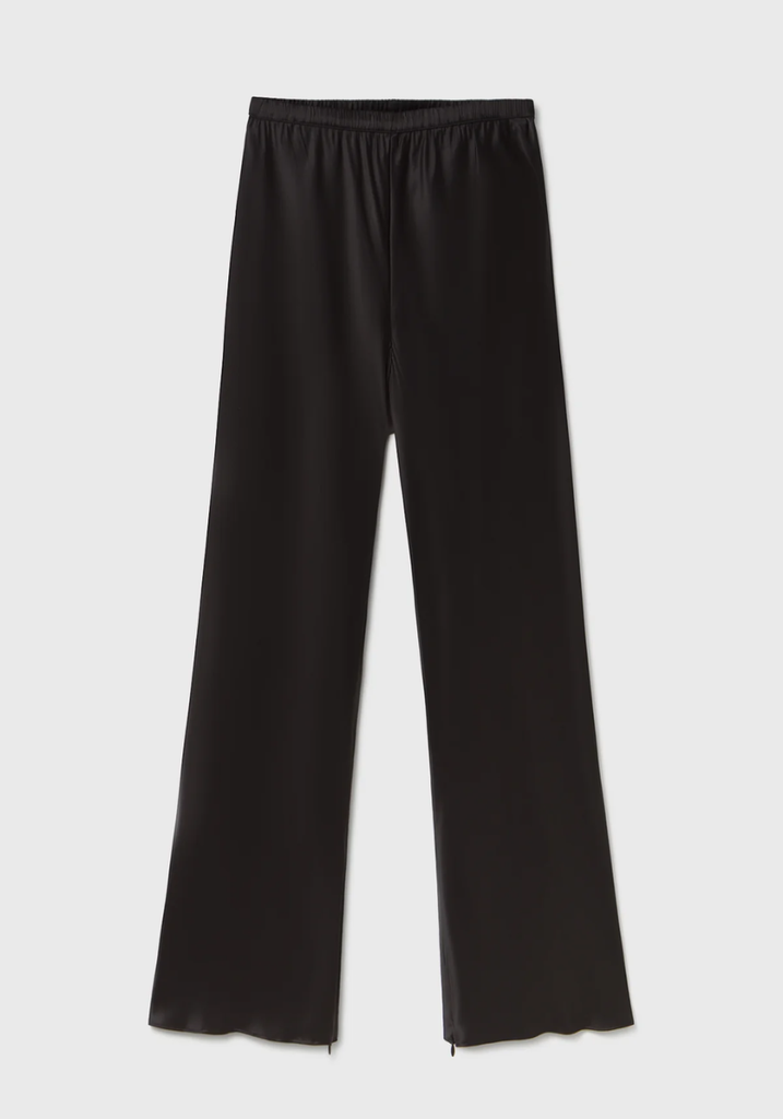 Cropped Bias Cut Pants - Black Satin