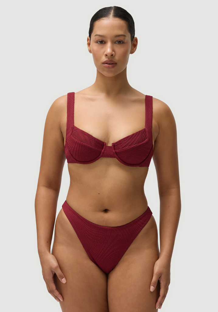 Yasmin is 173cm tall and wears size M in tops and L in bottoms. She wears a size M in a full piece.