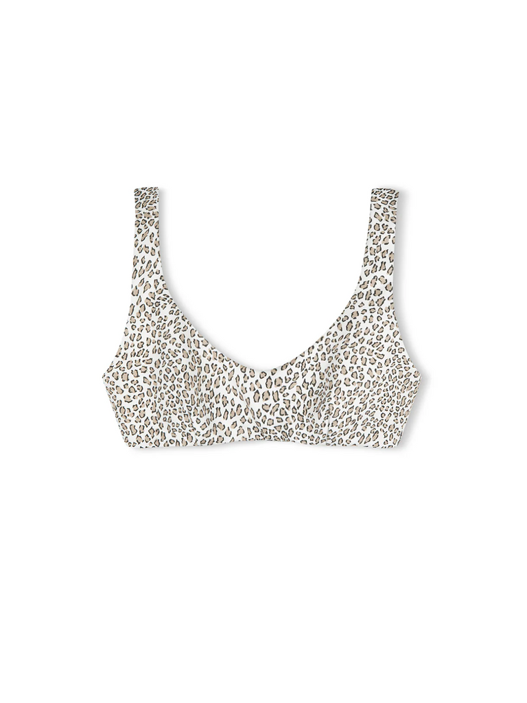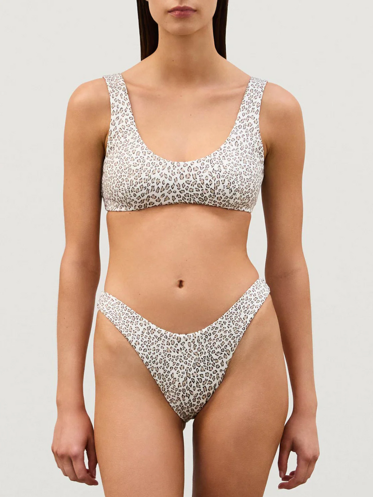 The Micro Leopard Crop Bikini Bralette features a flattering low-cut neckline with fixed straps for a secure, comfortable fit. Designed for active movement in a micro leopard print inspired by early ZZ collections.