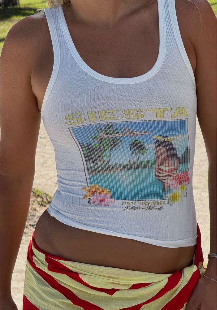 Ribbed cotton tank top. Classic cut with digital print design on the chest.