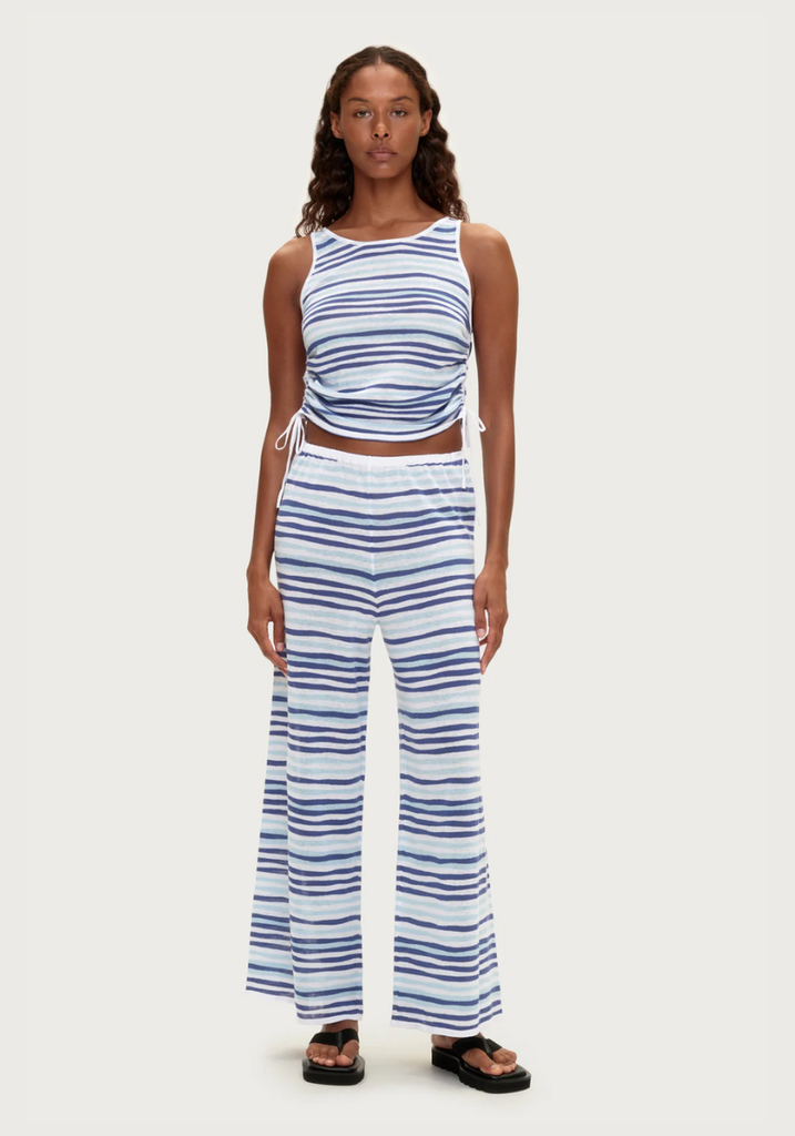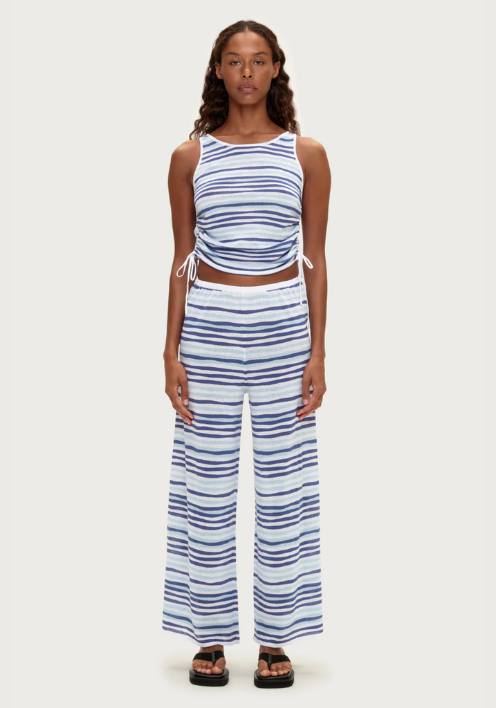 Gathered Knit Tank - Blue Stripe