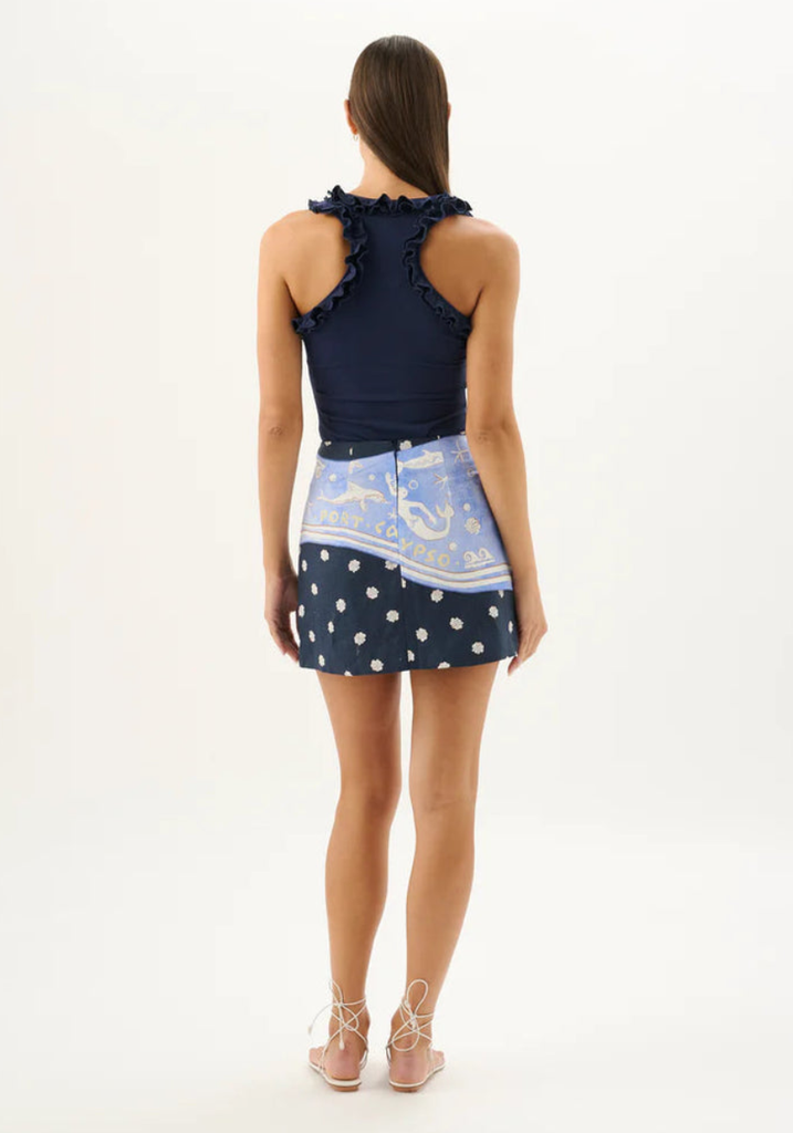 A refined sleeveless tank, crafted from a soft stretch jersey with a smooth, second-skin feel. Designed with a flattering scoop neckline and delicate ruffle trim through the straps and neckline, the Paloma Tank contours the body for a clean, feminine silhouette. Effortlessly versatile, it’s the perfect foundation piece to style back with printed skirts or tailored separates.