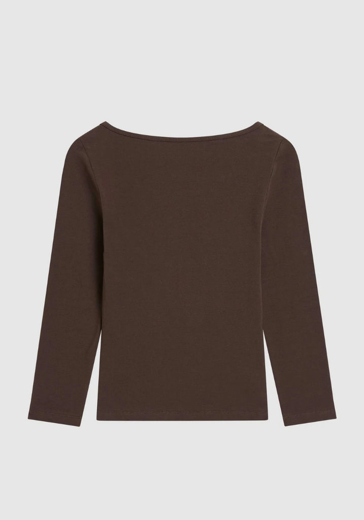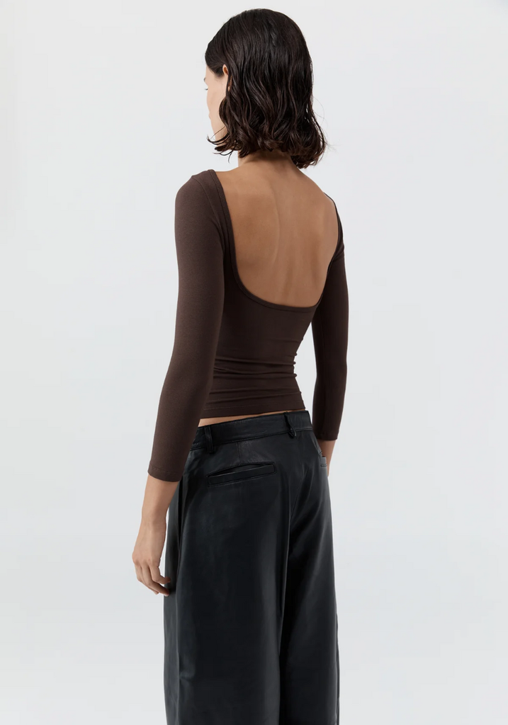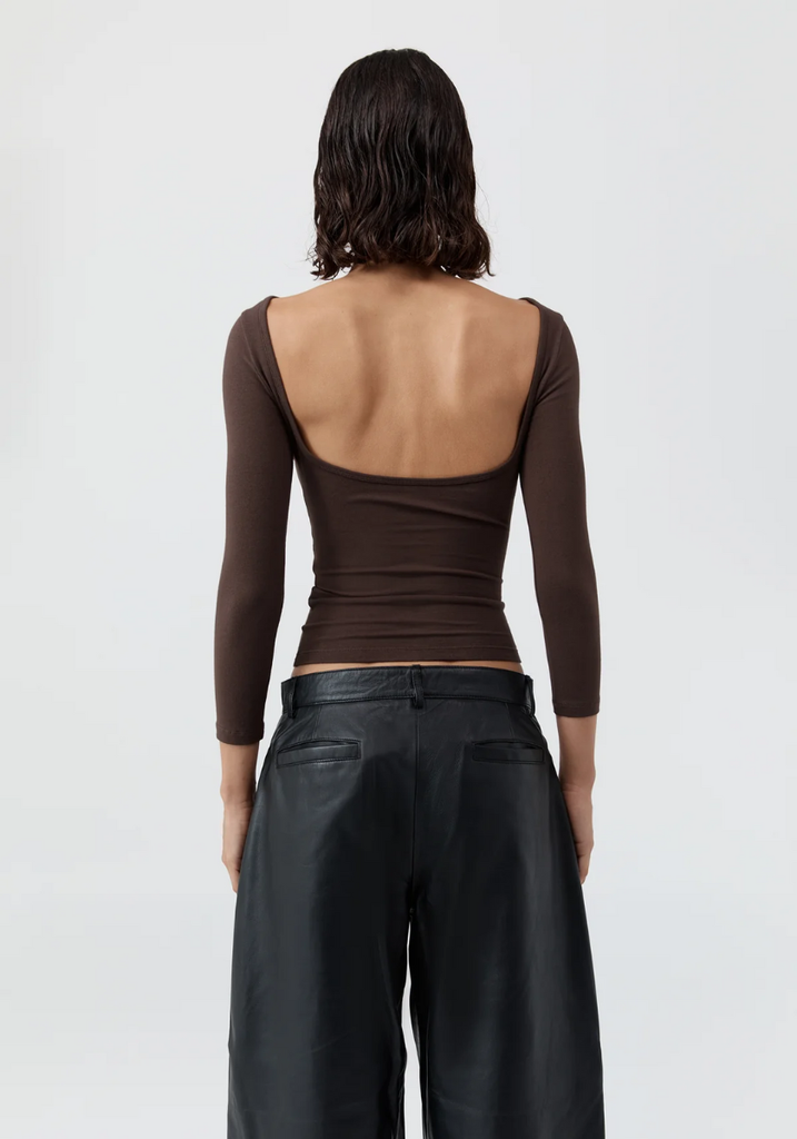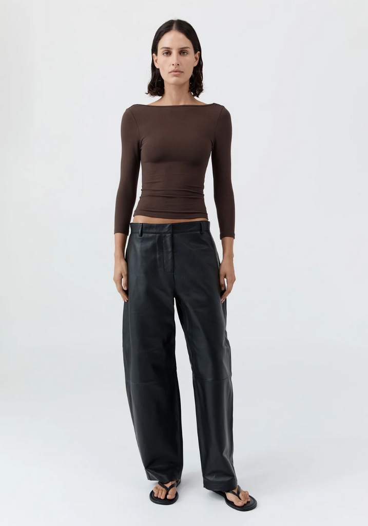 The Soft Jersey Ballerina Top is crafted from organic cotton, featuring a bateau neckline, scooped back, and 3/4 sleeves. Offering a slim-line minimalist silhouette and a second-skin fit, the Soft Jersey Ballerina Top is a refined wardrobe essential.