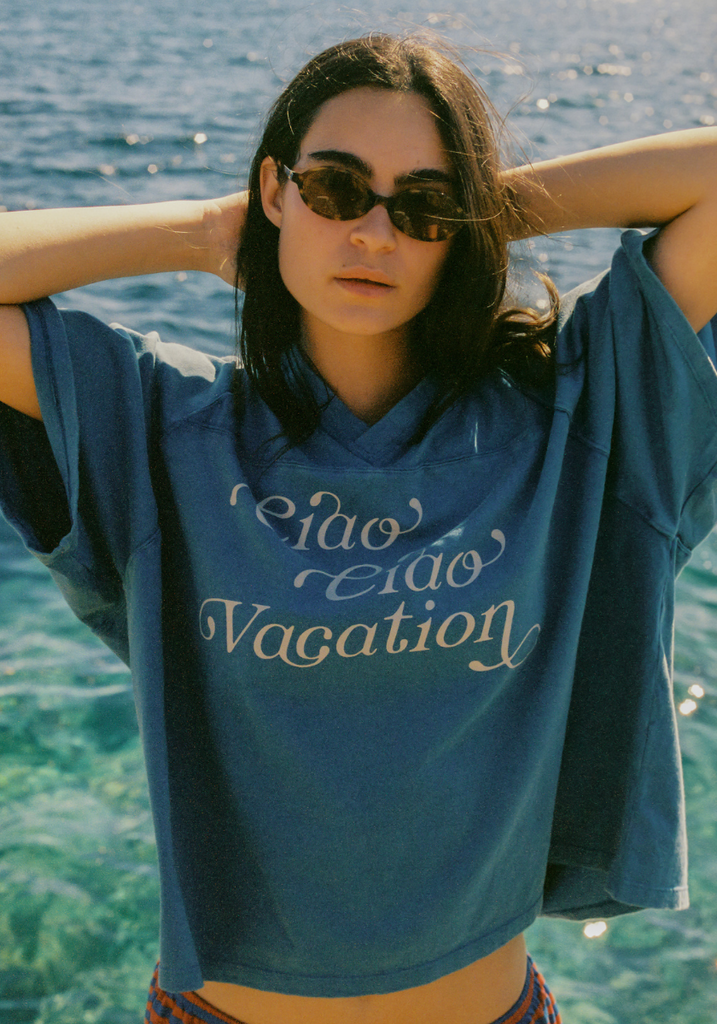 BLUE SKIES AND ENDLESS VIBES IN THIS BLUE VACAY CROP TEE! THE ULTIMATE STATEMENT PIECE THAT SAYS EVERYTHING YOU NEED TO KNOW ABOUT YOUR LIFESTYLE. CROPPED TO PERFECTION AND READY FOR THOSE SPONTANEOUS ADVENTURES THAT TURN INTO THE BEST MEMORIES.