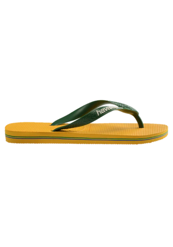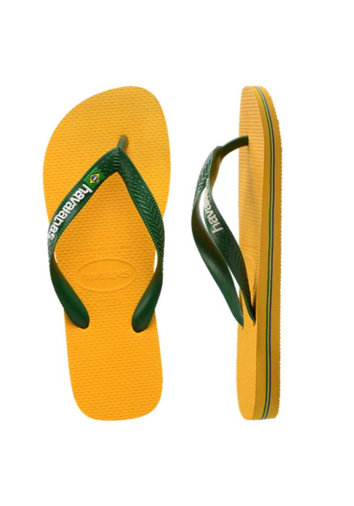 These Women's Brazil Logo Flip Flops in Yellow Pop offer comfortable support with cushioned footbeds and classic straps. Designed for beach, pool, or casual wear, they feature the Brazilian flag on the strap and a colourful sole inspired by Brazil. Durable and stylish, they bring quality and easy comfort to your everyday look.