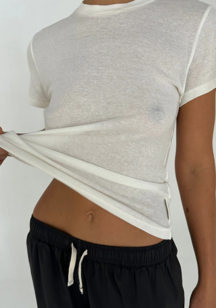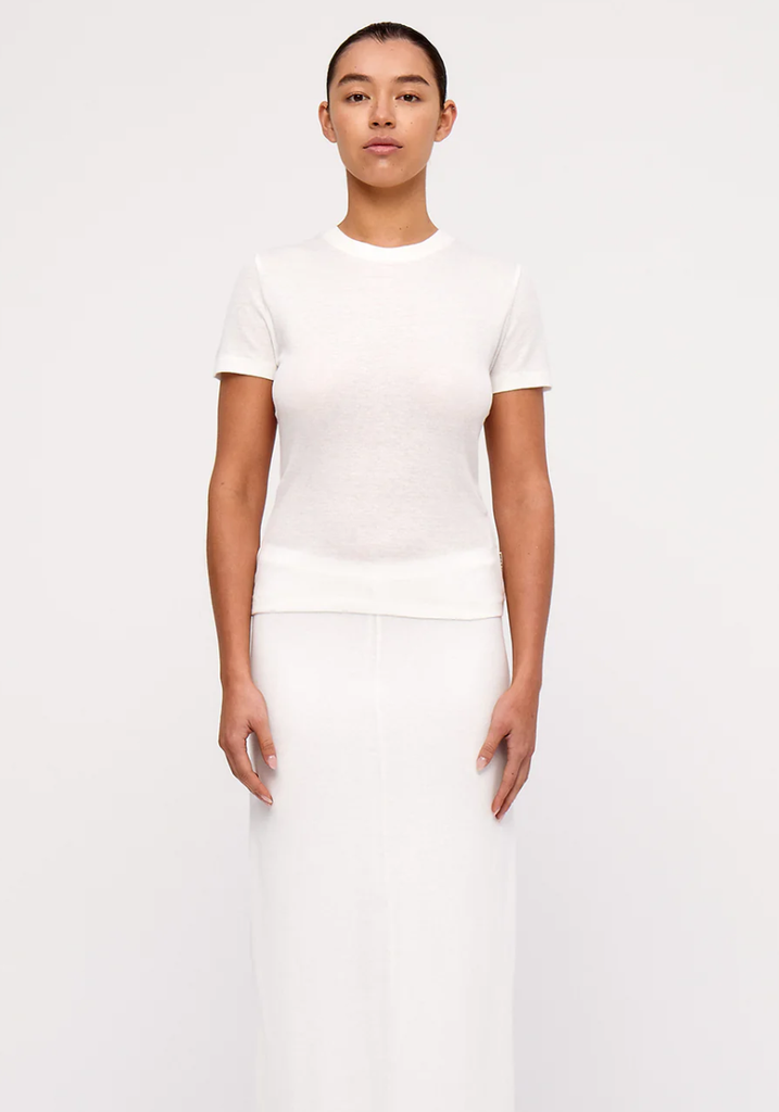This classic T-Shirt boasts a slim fit, ribbed binding crew neckline, short sleeves and is made from a soft, breathable hemp-cotton blend. Its lightweight fabric and versatile design make it an essential wardrobe staple that pairs effortlessly with any outfit.